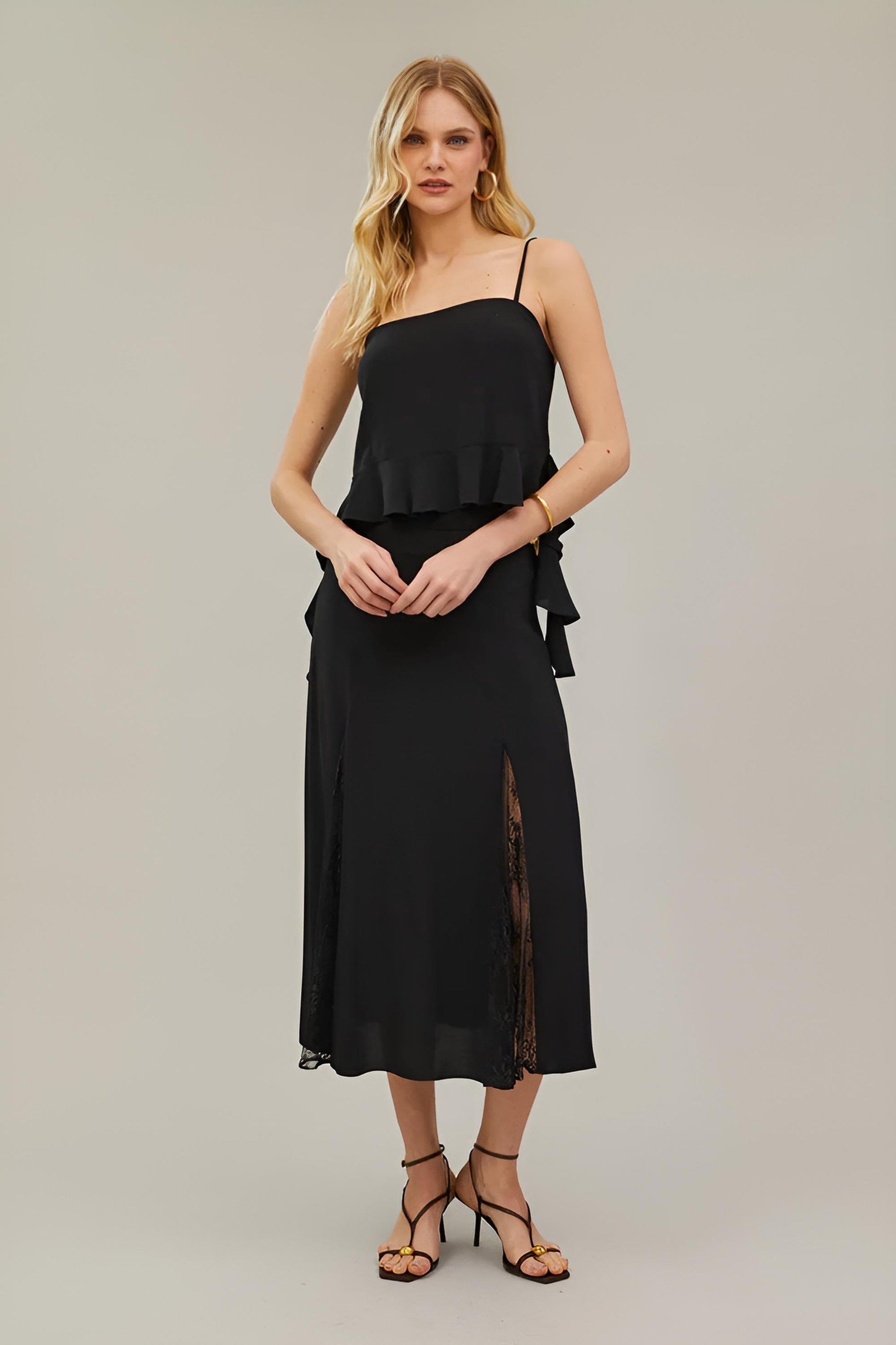 A Saia Midi Godê RYVEI combina fluidez, sofisticação e romantismo moderno em uma peça pensada para transitar entre o verão e o outono-inverno.
