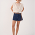 Com comprimento curto, cintura média e jeans de lavagem escura, ele oferece um visual moderno, versátil e perfeito para diversas ocasiões — desde looks casuais até produções mais estilosas para o dia.