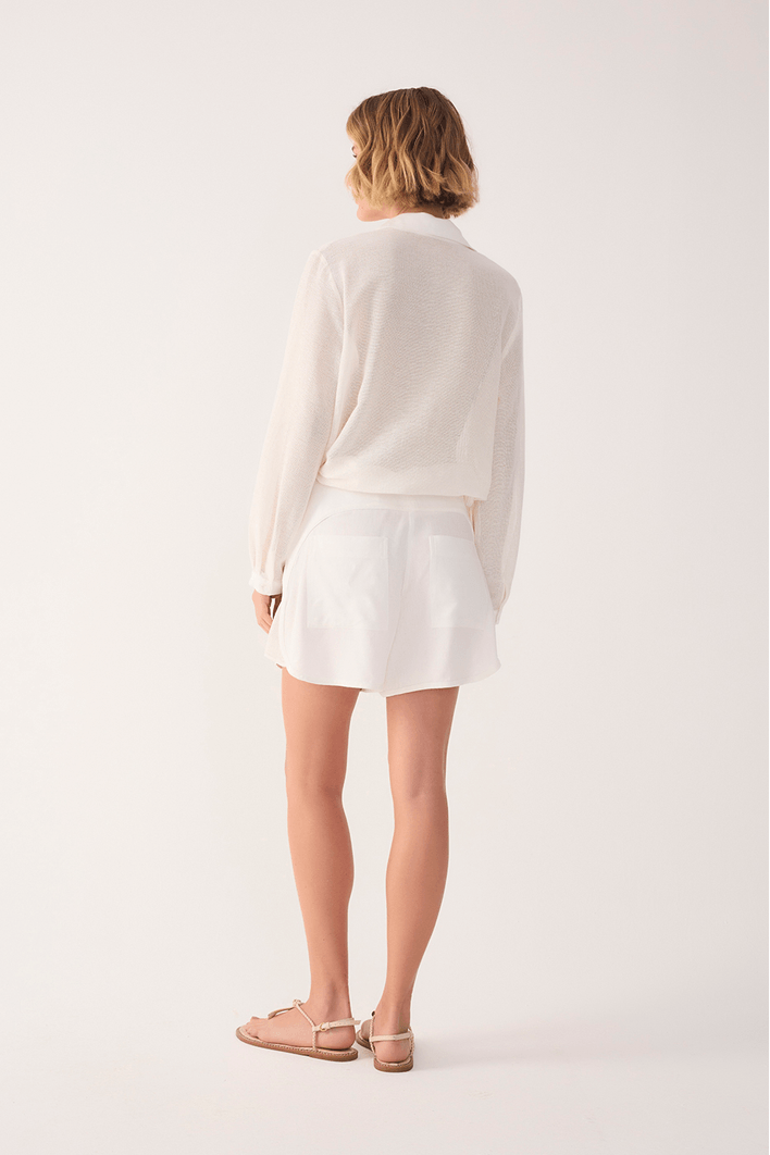 Design: Short de linho com detalhe em tela